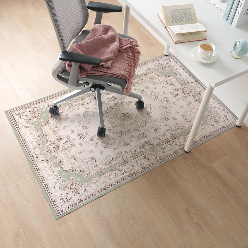 拭けるチェアマット 「Sheete me ! (シーテミー)」 90cm×150cm クラシック・ペルシャ ヴィンテージセージ Mon Sucrier