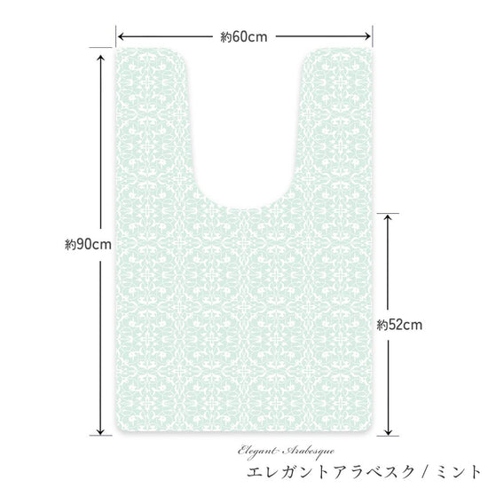 拭けるトイレマット Sheete me ! シーテミー ロングタイプ 60cm×90cm エレガントアラベスク/ミント Mon Sucrier