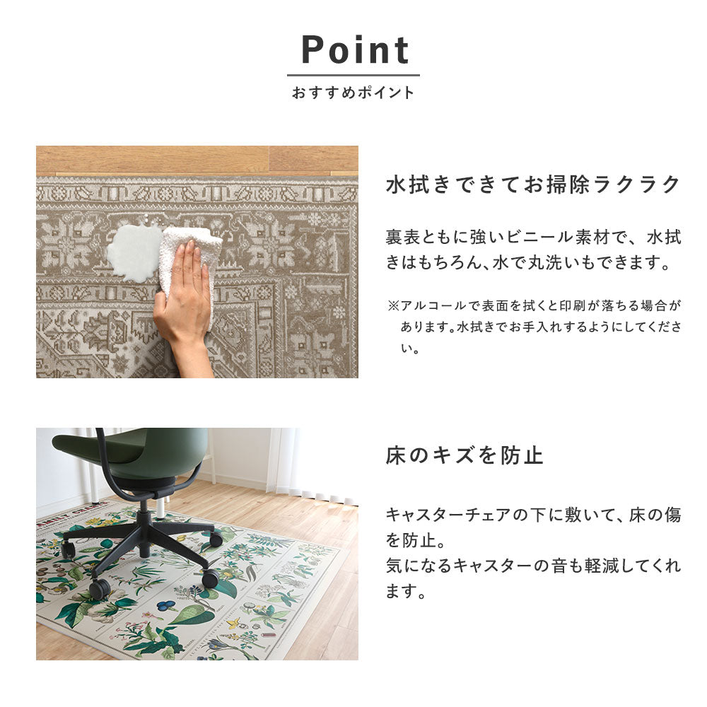 | 素材 | 表:塩化ビニール・ポリエステル繊維 裏:発泡PVC(滑り止め加工付き) |
