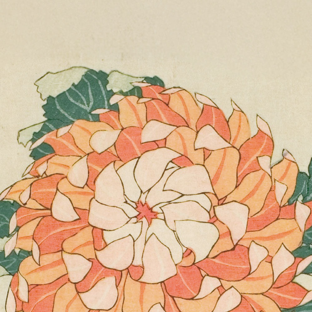 季節の花を描いたシリーズの1枚。秋に咲く菊を描いた錦絵。