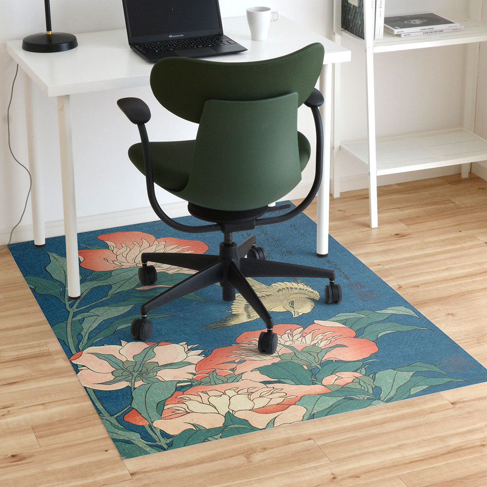 拭けるチェアマット 「Sheete me ! (シーテミー)」 110cm×150cm 葛飾北斎 芍薬 カナリア