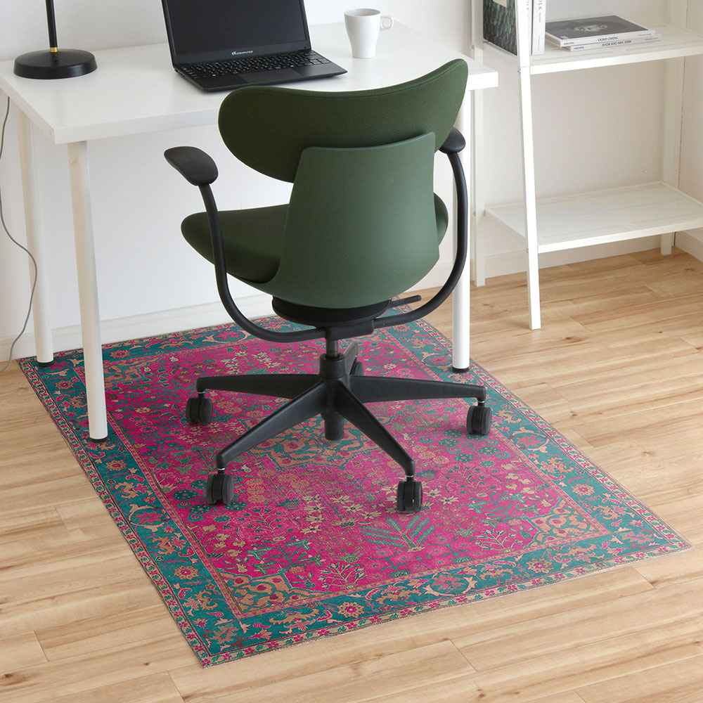 拭けるチェアマット 「Sheete me ! (シーテミー)」 100cm×150cm ビンテージカーペット ピンク×グリーン