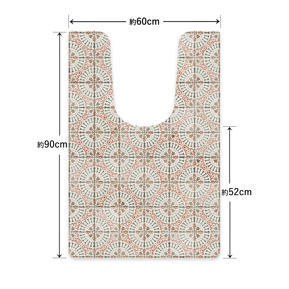 拭ける トイレマット Sheete me! シーテミー ロングタイプ 60cm×90cm KKアンティークタイル グレー×トマト