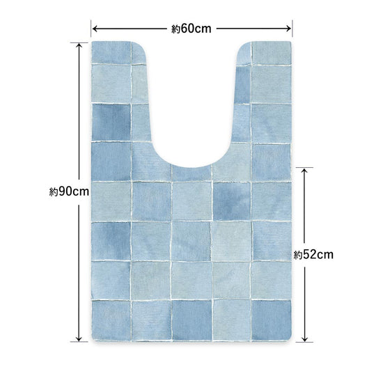 拭ける トイレマット Sheete me! シーテミー ロングタイプ 60cm×90cm デニムタイル サックス