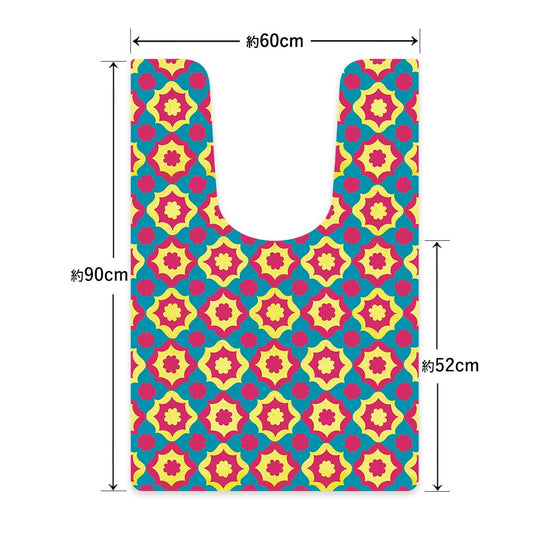 拭ける トイレマット Sheete me! シーテミー ロングタイプ 60cm×90cm 復刻ヴィンテージ A柄 ビビッドBL×YW×PK