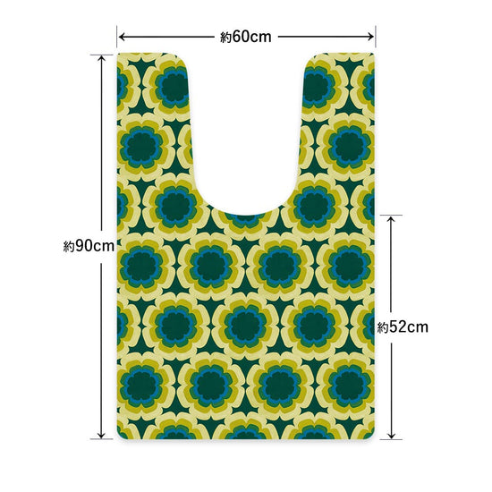 拭ける トイレマット Sheete me! シーテミー ロングタイプ 60cm×90cm 復刻ヴィンテージ B柄 グリーン×イエロー