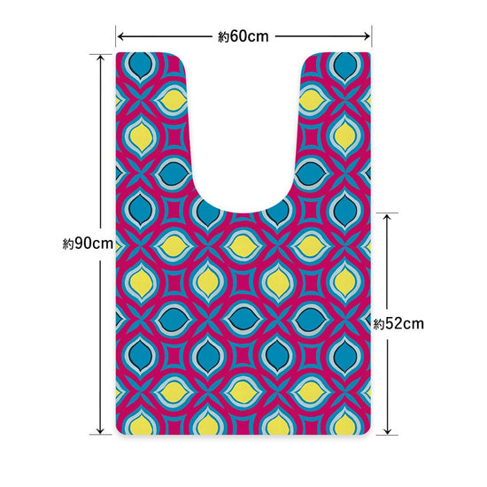 拭ける トイレマット Sheete me! シーテミー ロングタイプ 60cm×90cm 復刻ヴィンテージ C柄 ビビッドBL×YW×PK