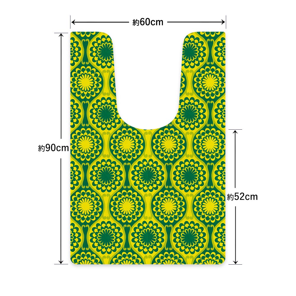 拭ける トイレマット Sheete me! シーテミー ロングタイプ 60cm×90cm 復刻ヴィンテージ D柄 グリーン×イエロー