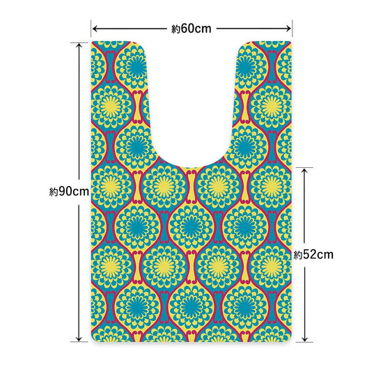 拭ける トイレマット Sheete me! シーテミー ロングタイプ 60cm×90cm 復刻ヴィンテージ D柄 ビビッドBL×YW×PK