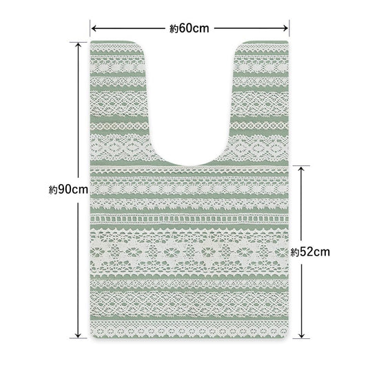 拭ける トイレマット Sheete me! シーテミー ロングタイプ 60cm×90cm レースボーダー グリーン