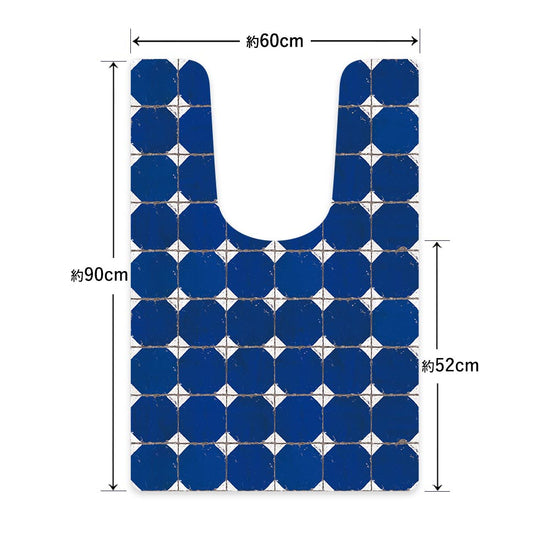 拭ける トイレマット Sheete me! シーテミー ロングタイプ 60cm×90cm レトロタイル ダイヤ/ブルー