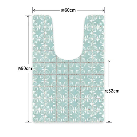 拭ける トイレマット Sheete me! シーテミー ロングタイプ 60cm×90cm レトロタイル デイジー/アクア