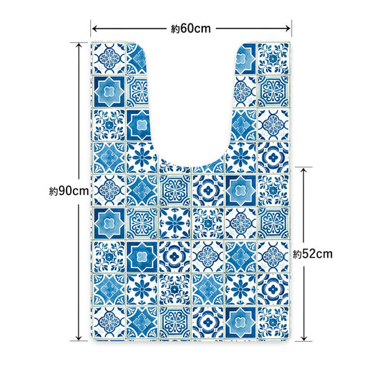 拭ける トイレマット Sheete me! シーテミー ロングタイプ 60cm×90cm ランダムタイル ブルー