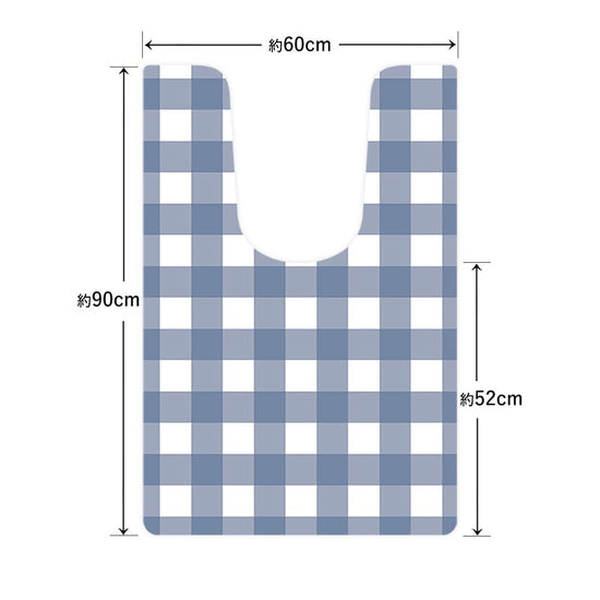 拭けるトイレマット 「Sheetan シータン」 ロング チェック02 ブルーグレー 60cm×90cm
