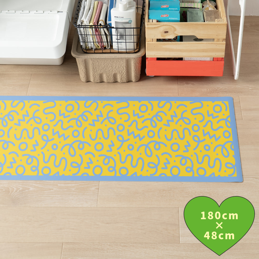 拭けるキッチンマット 「Sheete me ! (シーテミー)」 48cm×180cm WIGGLE WAVE サニーシャワー What's poppin?
