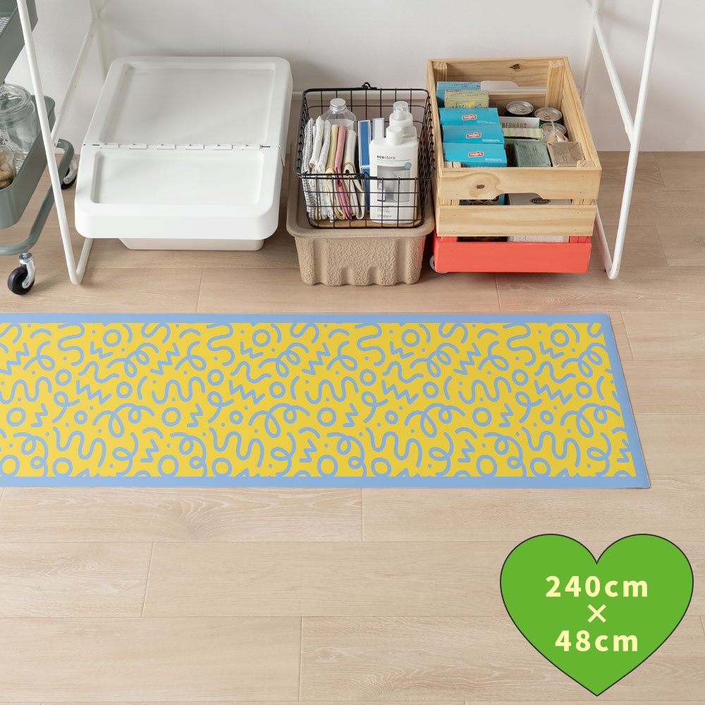 拭けるキッチンマット 「Sheete me ! (シーテミー)」 48cm×240cm WIGGLE WAVE サニーシャワー What's poppin?