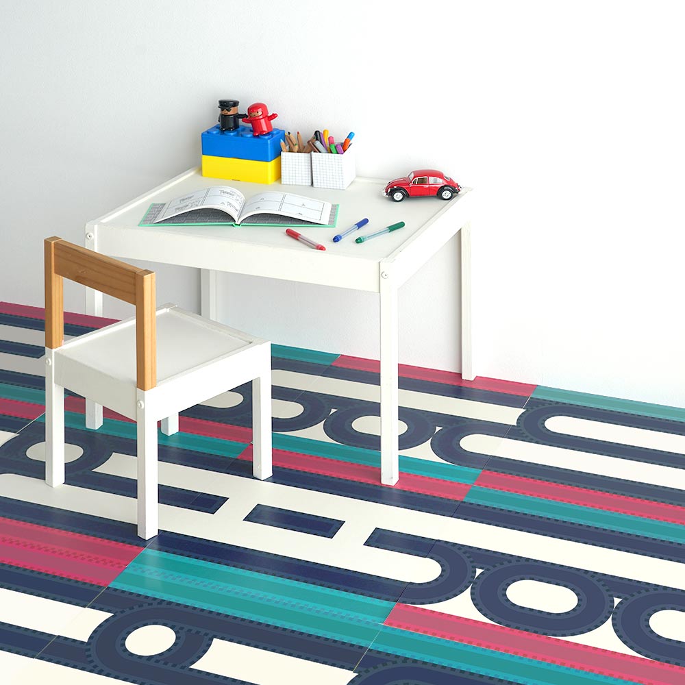 貼ってはがせる クッションフロアタイル シールタイプ WALL-RAIL SHUPOR シュポー(レッド) Lサイズ Aセット (44cm×44cm) 4枚セット CWZ-WR03-LA WALLTZ ウォルツ ハシジュンコ