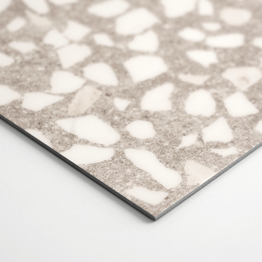 ツブ石を密度高く散りばめたテラゾー柄。