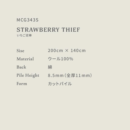 ラグ カーペット 絨毯 サンゲツ モリスクロニクルズ ウィリアムモリス MCG343S ストロベリーシーフ いちご泥棒 200×140cm 長方形