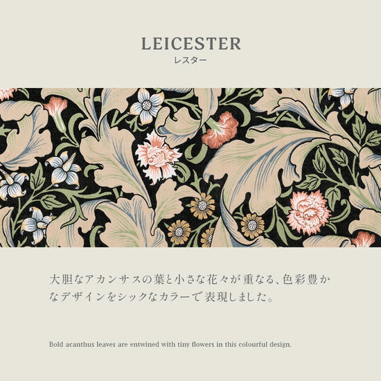 大胆なアカンサスの葉と小さな花々が重なる、色彩豊かなデザインをシックなカラーで表現しました。