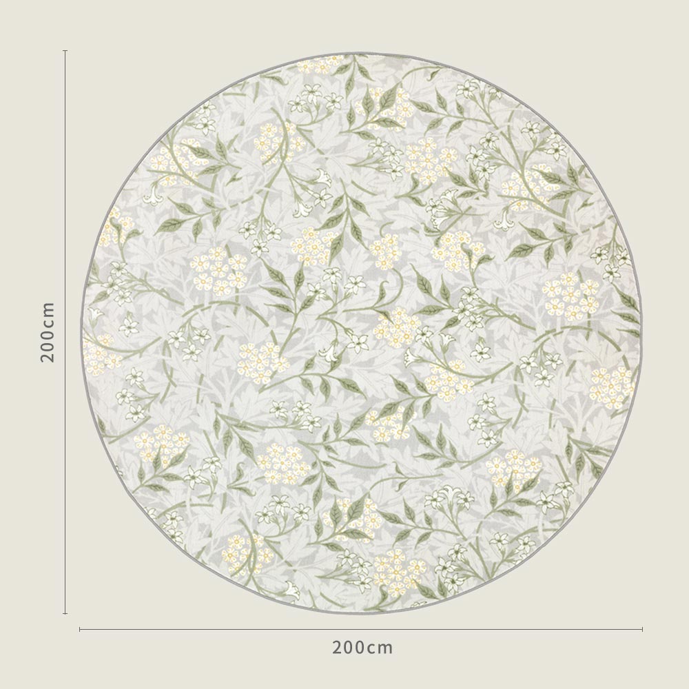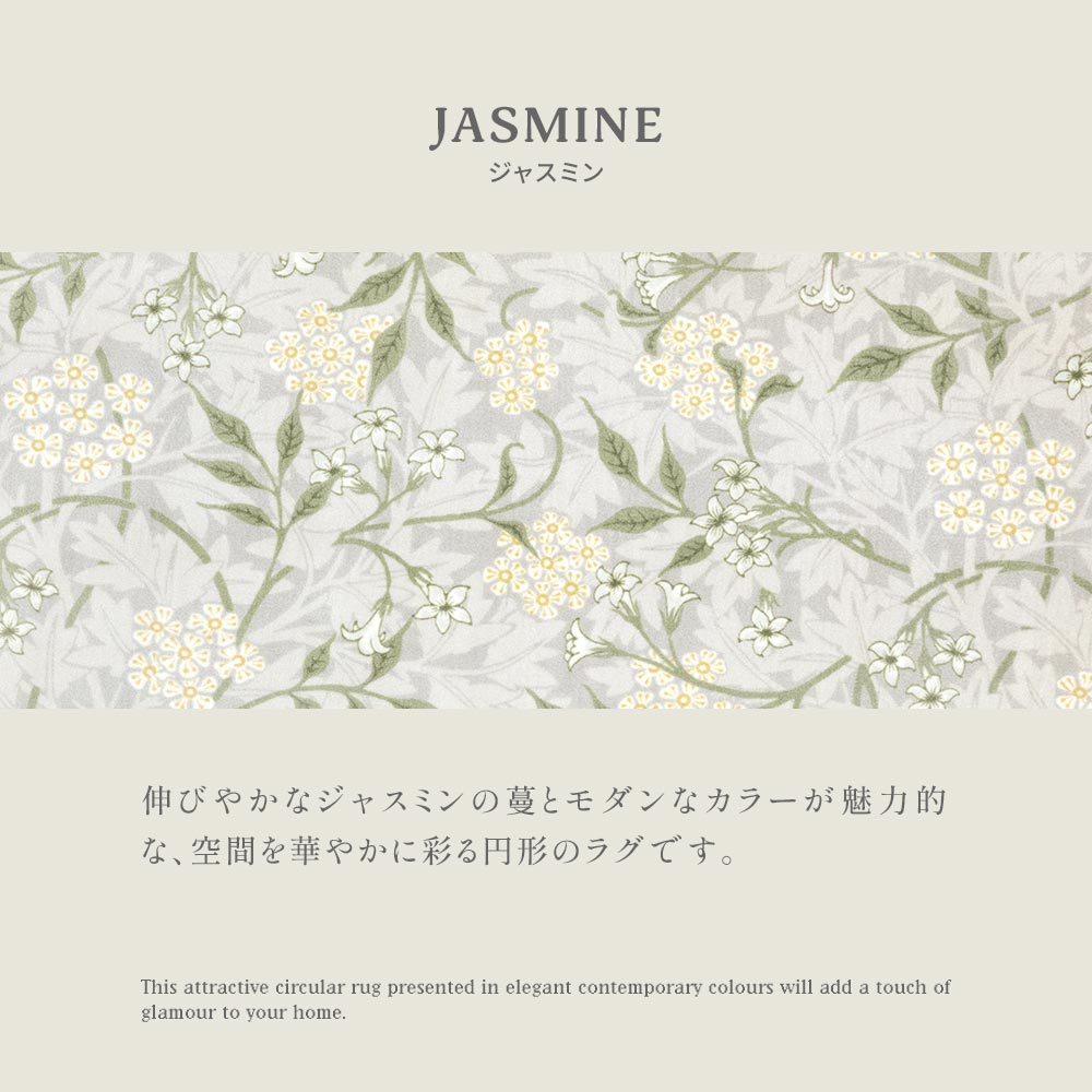 伸びやかなジャスミンの蔓とモダンなカラーが魅力的な、空間を華やかに彩る円形のラグです。
