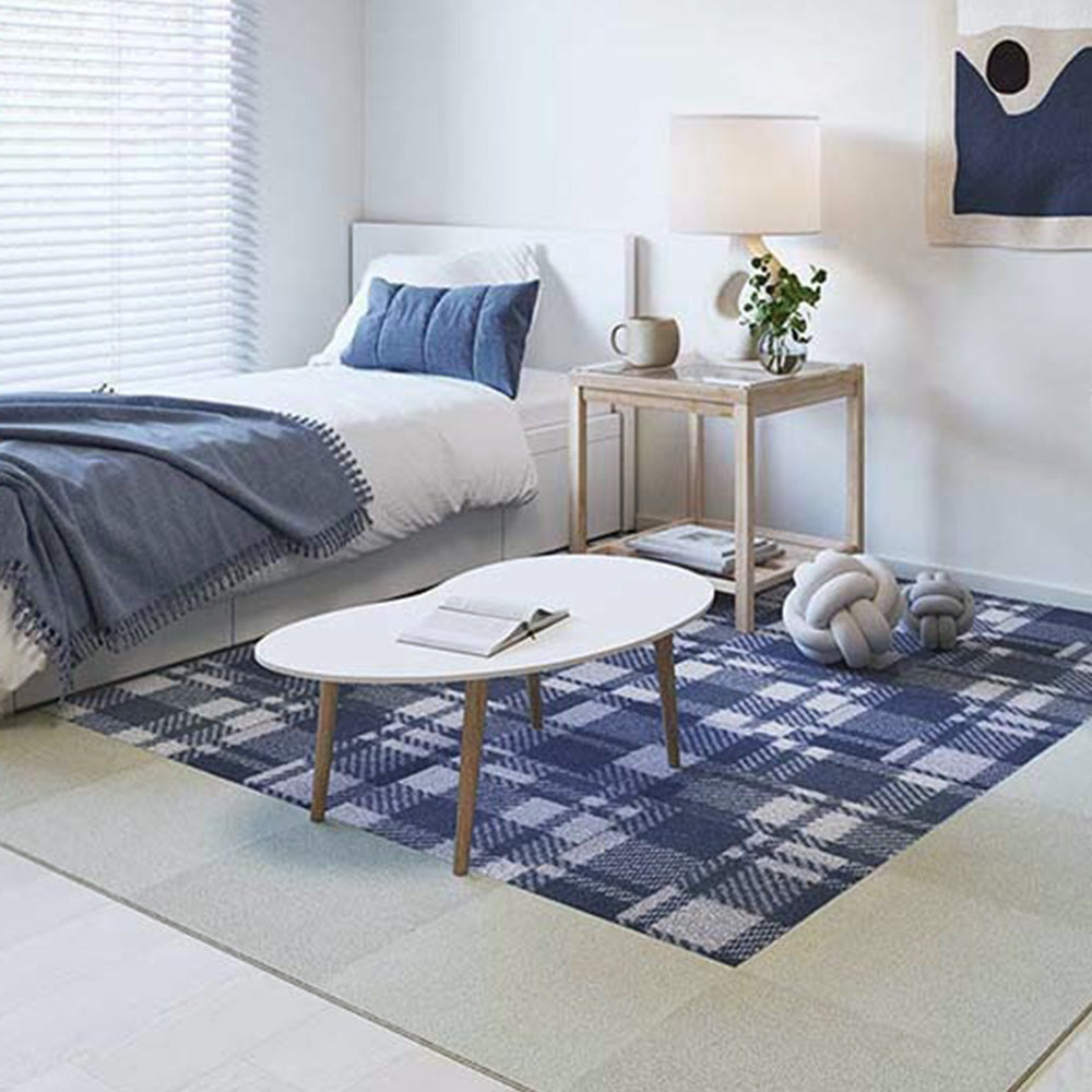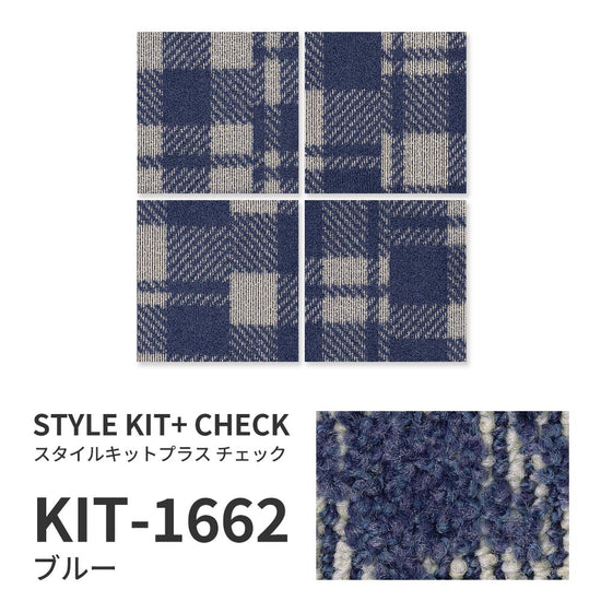 洗えるタイルカーペット サンゲツ STYLE KIT+ CHECK 【1枚単位で販売】 KIT-1662 ブルー 吸着タイプ 床暖房対応 消臭