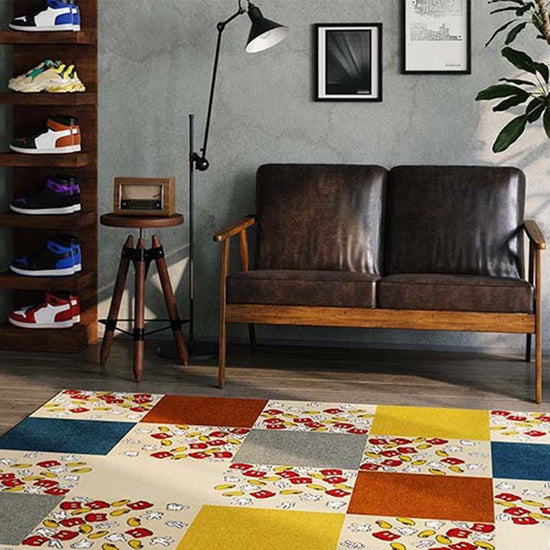 フローリングなどの上に置くだけでずれない、吸着タイプのタイルカーペット。