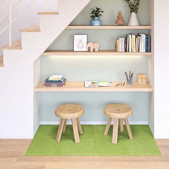 フローリングなどの上に置くだけでずれない、吸着タイプのタイルカーペット。