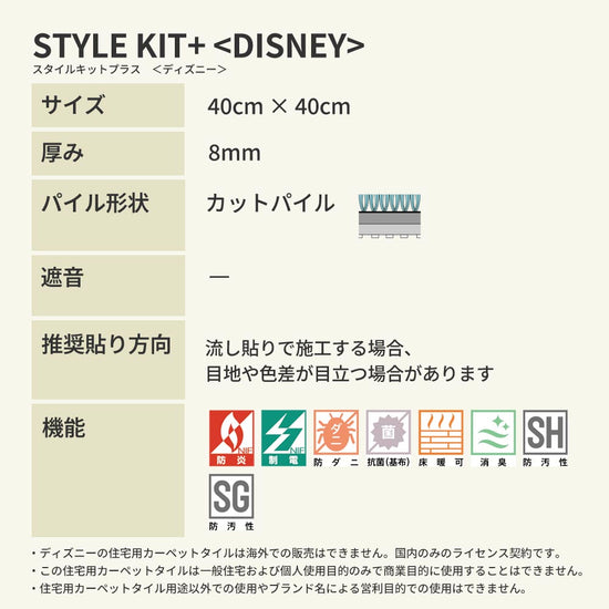 洗えるタイルカーペット サンゲツ STYLE KIT+ <DISNEY> 【1枚単位で販売】 KIT-1673 プーさん 吸着タイプ 床暖房対応 消臭