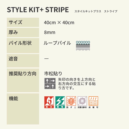 洗えるタイルカーペット サンゲツ STYLE KIT+ STRIPE 【1ケース(10枚入)単位で販売】 KIT-1622 オレンジ 吸着タイプ 床暖房対応