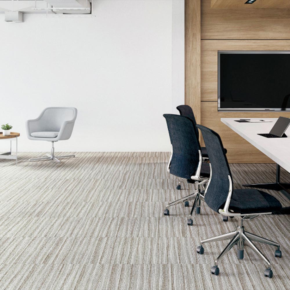 フローライン Dシリーズ(NT-2850 D-ecoシリーズ)は、自然を感じる有機的な揺らぎのストライプが特徴のタイルカーペットです。