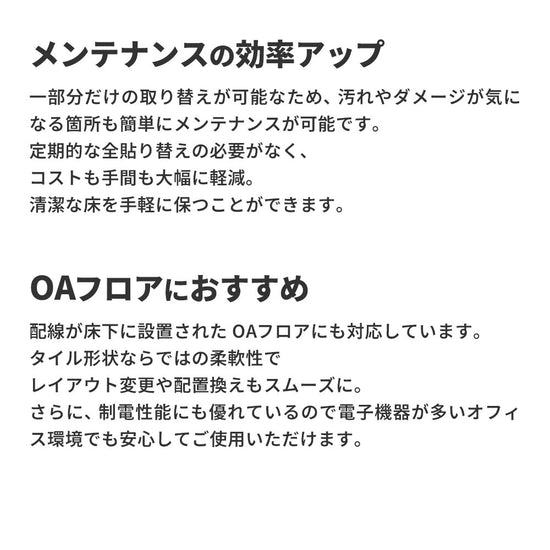 高い耐久性とコストパフォーマンスを両立した、定番かつ人気のタイルカーペットです。