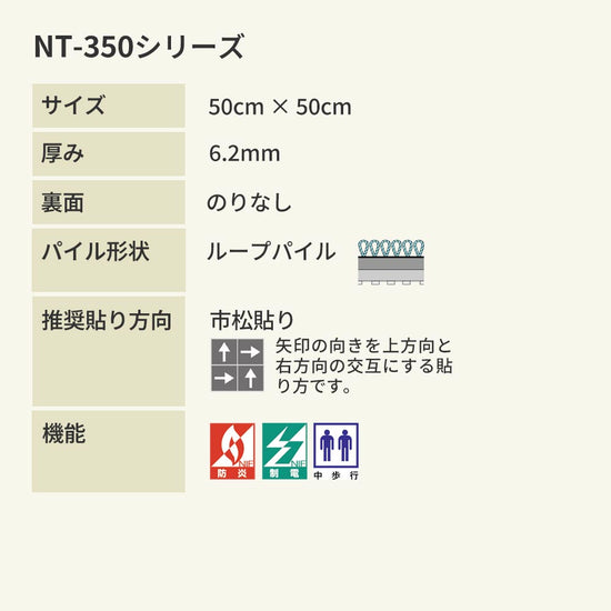 NT-350シリーズは、オフィスや商業空間にぴったりのベーシックな50cm角のタイルカーペット。