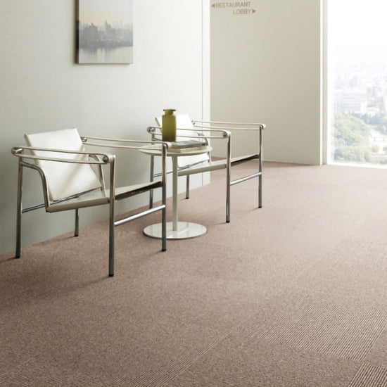 細いストライプをあしらったシンプルで汎用性の高いタイルカーペット。