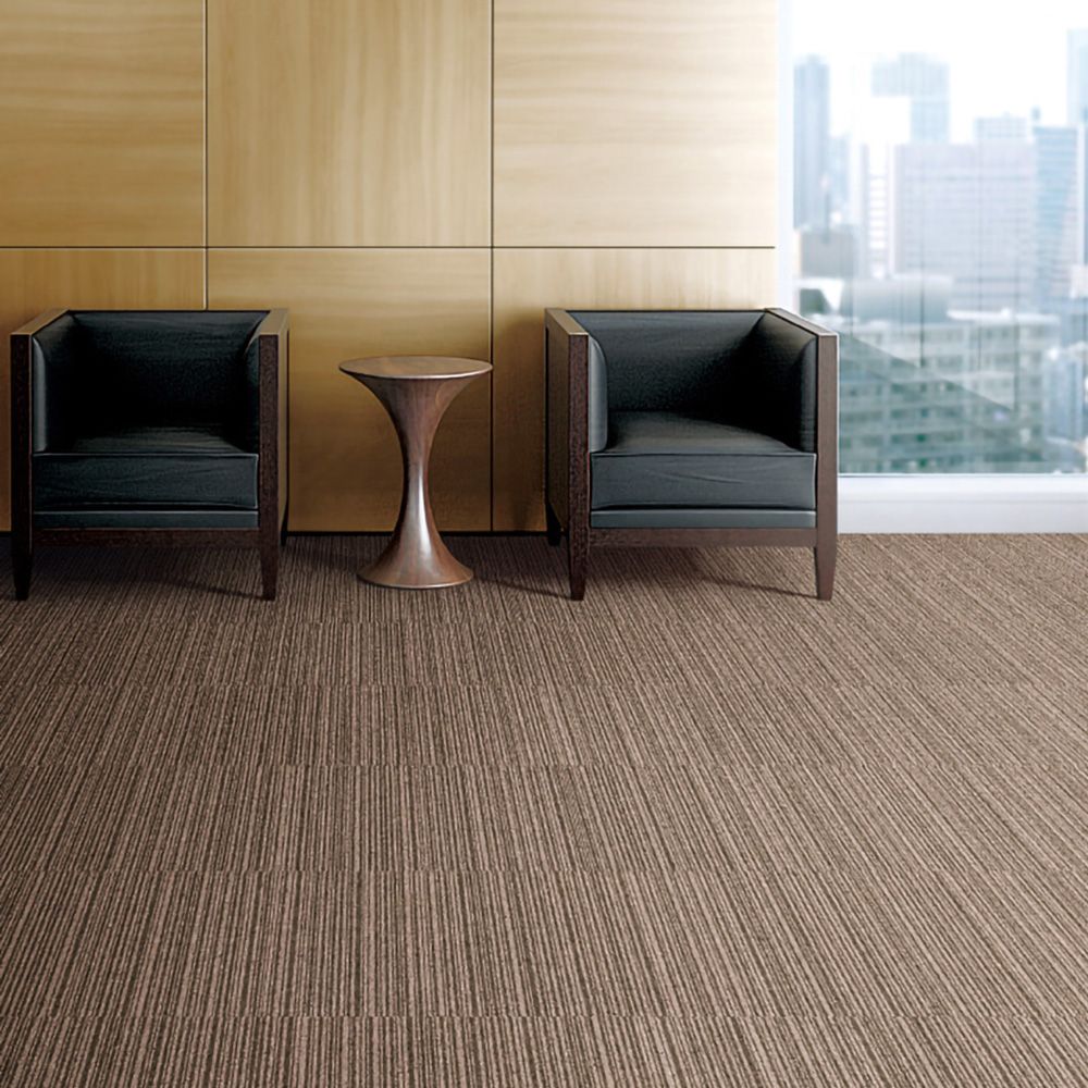 NT-350Vシリーズ「VALUE LINE」は、幅の異なる細いストライプが不規則に並ぶことで、洗練されたリズムと奥行きを生むデザインタイルカーペットです。