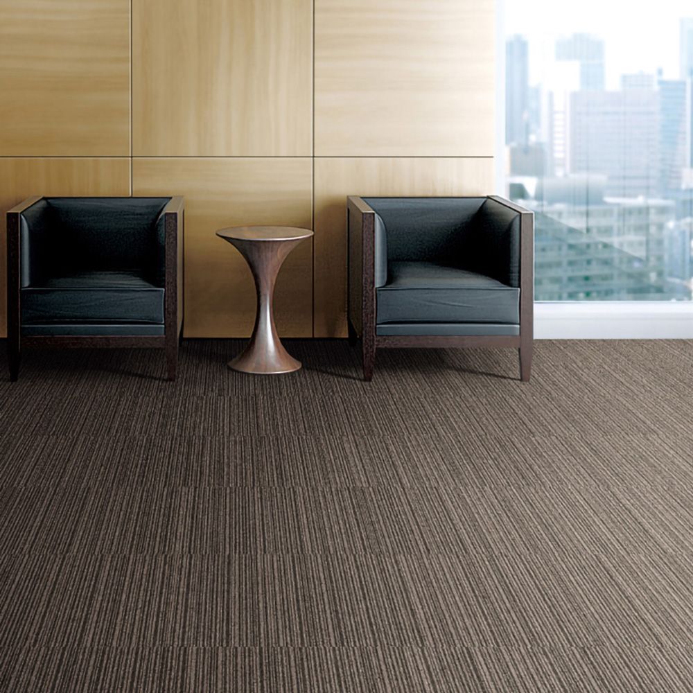 NT-350Vシリーズ「VALUE LINE」は、幅の異なる細いストライプが不規則に並ぶことで、洗練されたリズムと奥行きを生むデザインタイルカーペットです。