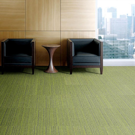 NT-350Vシリーズ「VALUE LINE」は、幅の異なる細いストライプが不規則に並ぶことで、洗練されたリズムと奥行きを生むデザインタイルカーペットです。