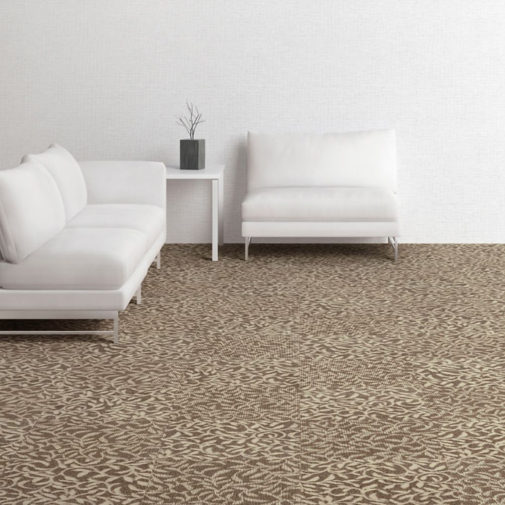 NT-490シリーズ「PLANTER」は、床に蔦が伸び広がるような大胆なデザインが魅力のタイルカーペット。