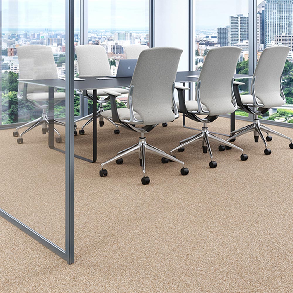 通行量の多い場所に適している「重歩行」に対応した土足OKのタイルカーペット。