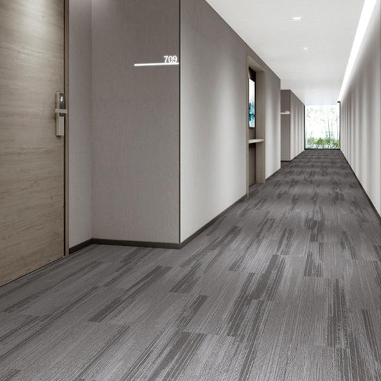 長方形のタイルカーペットならではの縦流れを活かしたデザインがダイナミックに空間を演出します。