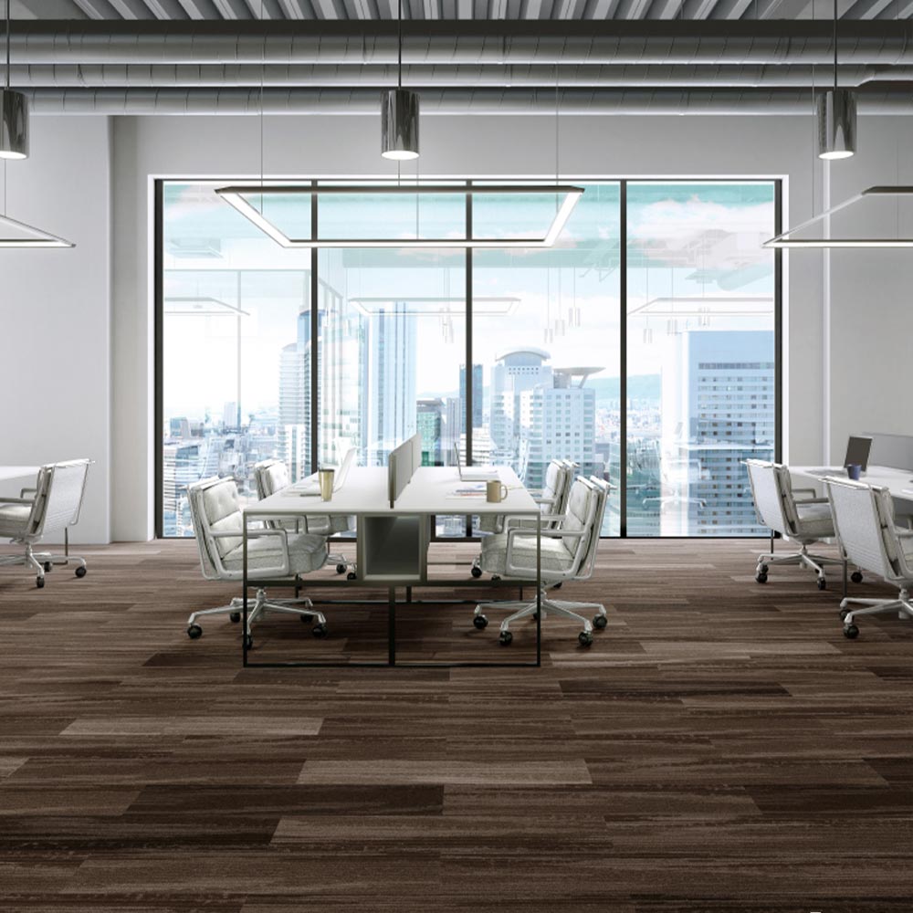 長方形のタイルカーペットならではの縦流れを活かしたデザインがダイナミックに空間を演出します。
