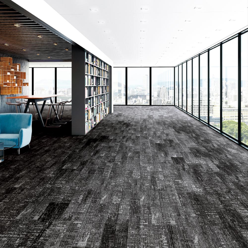 通行量の多い場所に適している「重歩行」に対応した土足OKのタイルカーペット。