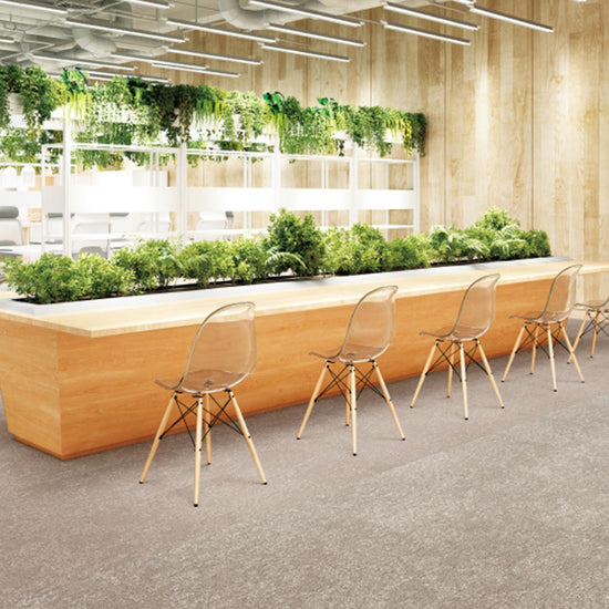タイルカーペットを敷き並べると、パイルの高低差とまばらな粒感が有機的な表情を生み出します。