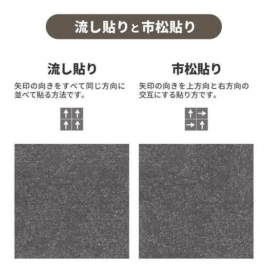 タイルカーペットを敷き並べると、パイルの高低差とまばらな粒感が有機的な表情を生み出します。