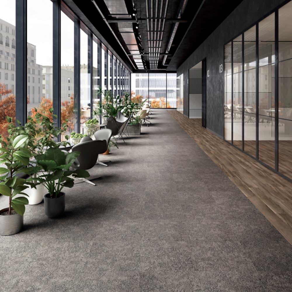 通行量の多い場所に適している「重歩行」に対応した土足OKのタイルカーペット。