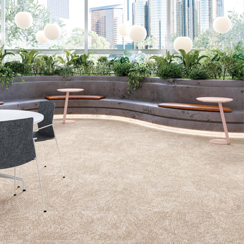 通行量の多い場所に適している「重歩行」に対応した土足OKのタイルカーペット。