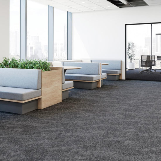 通行量の多い場所に適している「重歩行」に対応した土足OKのタイルカーペット。