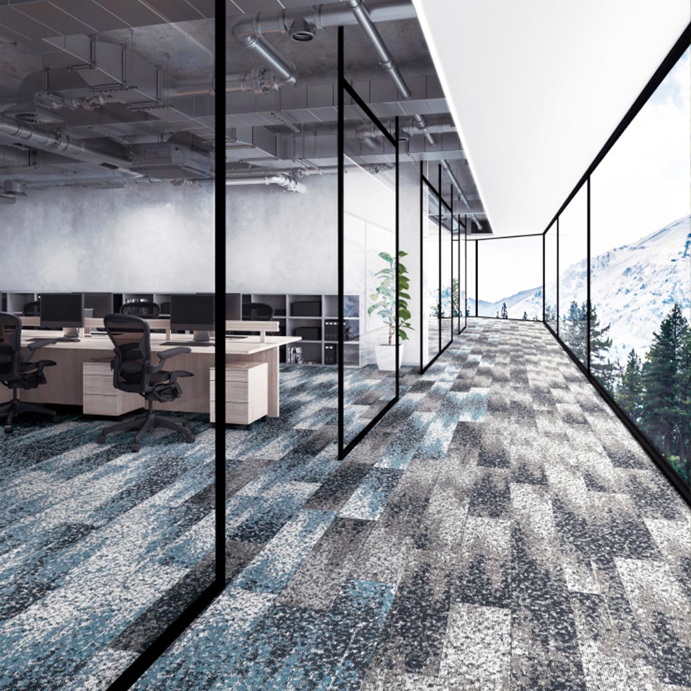 濃淡差がある色を用いることにより、奥行きのある空間が楽しめる長方形のタイルカーペットです。
