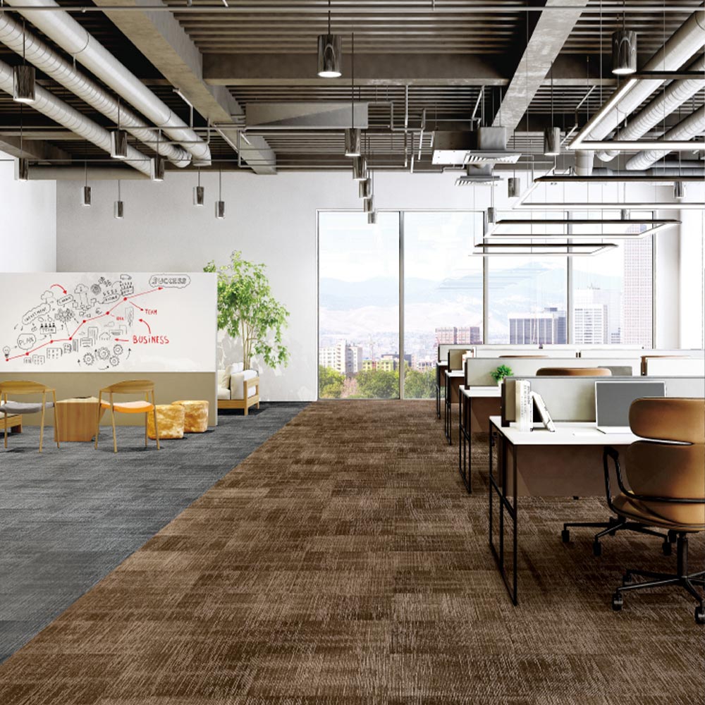 通行量の多い場所に適している「重歩行」に対応した土足OKのタイルカーペット。