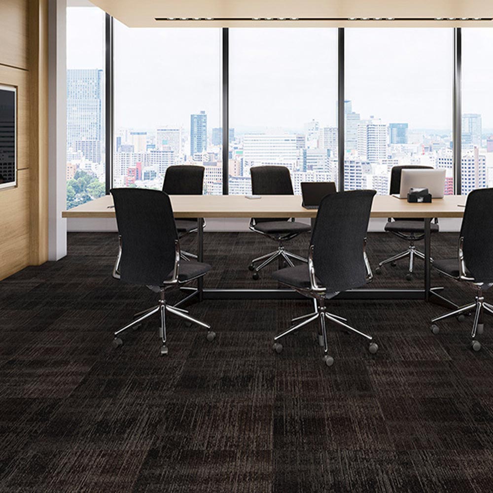 通行量の多い場所に適している「重歩行」に対応した土足OKのタイルカーペット。